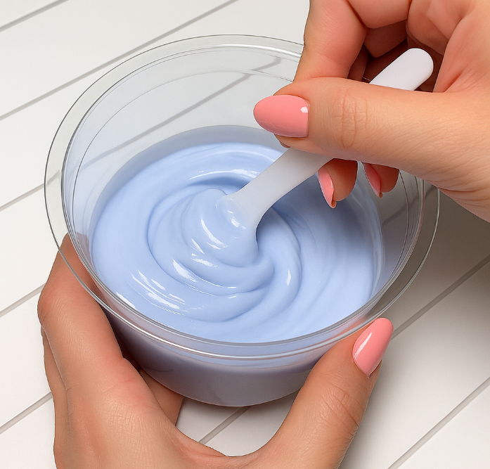 파우더랑 물을 섞어서 쫀득한 제형을 만든 다음,