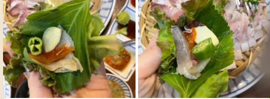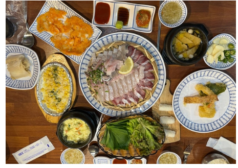 - 간장+와사비 찍어먹기 → 회 본연의 맛이 살아있어요