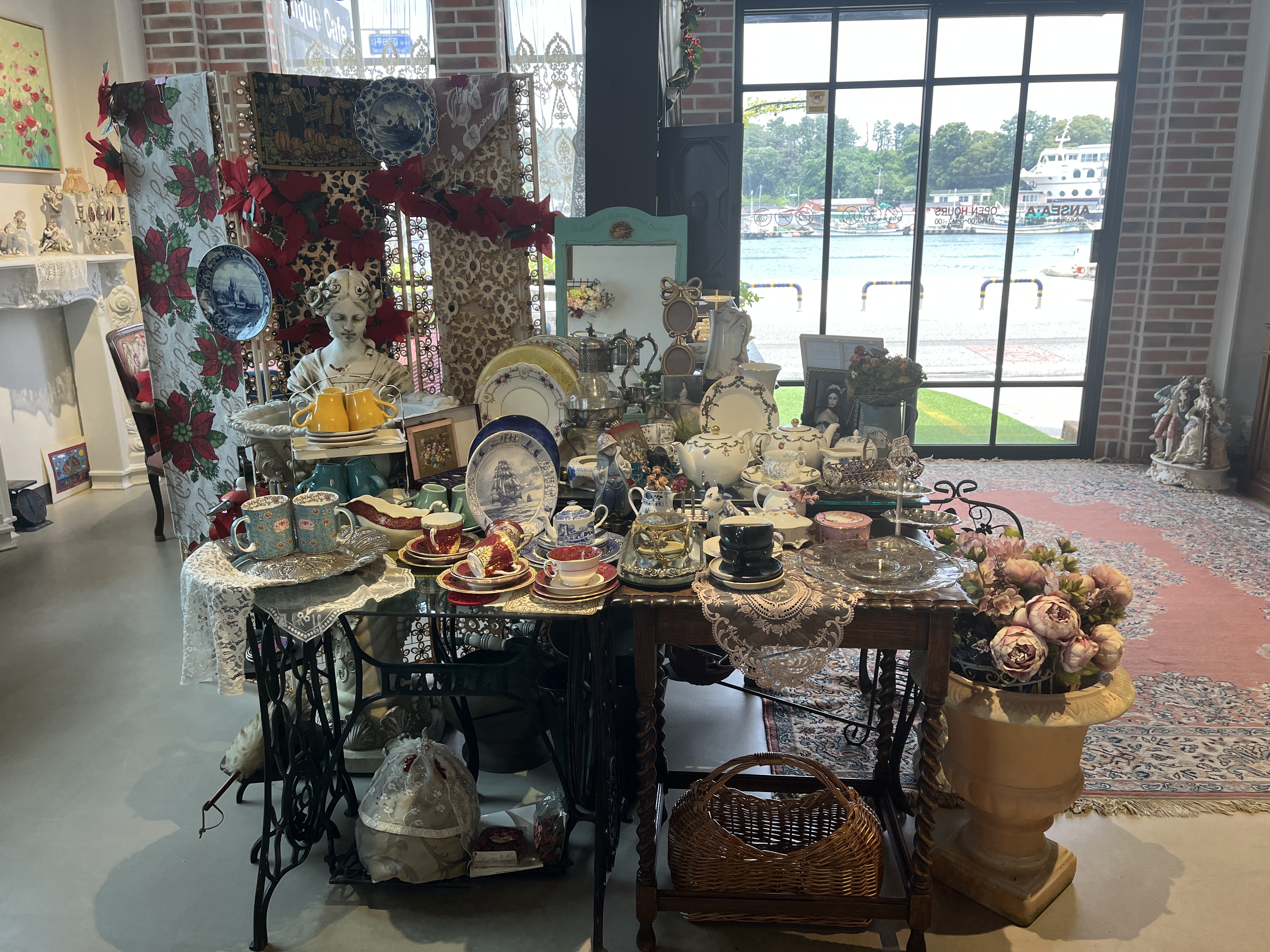 앤틱 가구, 엔틱 그릇, 클래식한 조명, 곳곳에 놓인