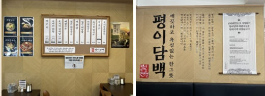 매장은 깔끔하고 넓은 공간으로 가족 단위 손님들이 편하게 식사할 수 있습니다. 테이블 간격이 넉넉하고, 축구 유니폼과 선수 사진으로 친근한 분위기를 연출해 인상적이었어요.